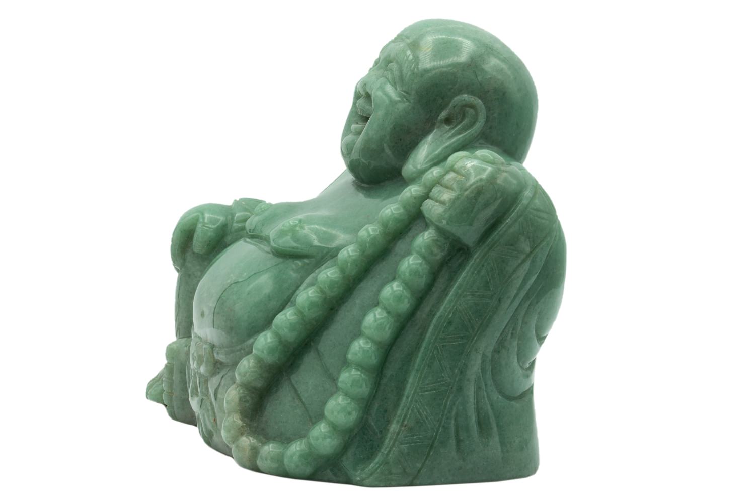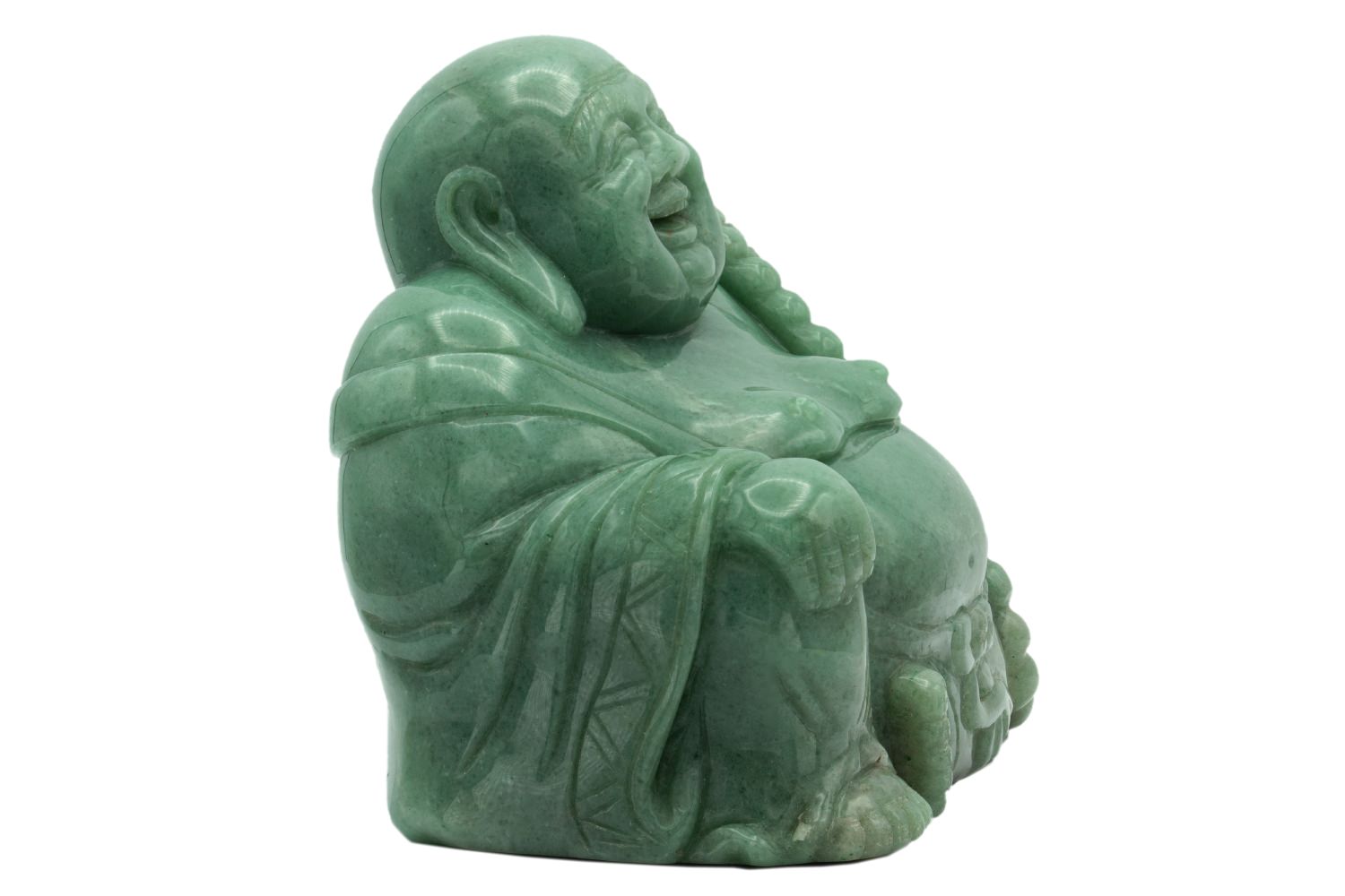 Sitzender Happy Buddha aus grünem Aventurin. In der linken Hand hält er eine Mala. Der Happy... mehr