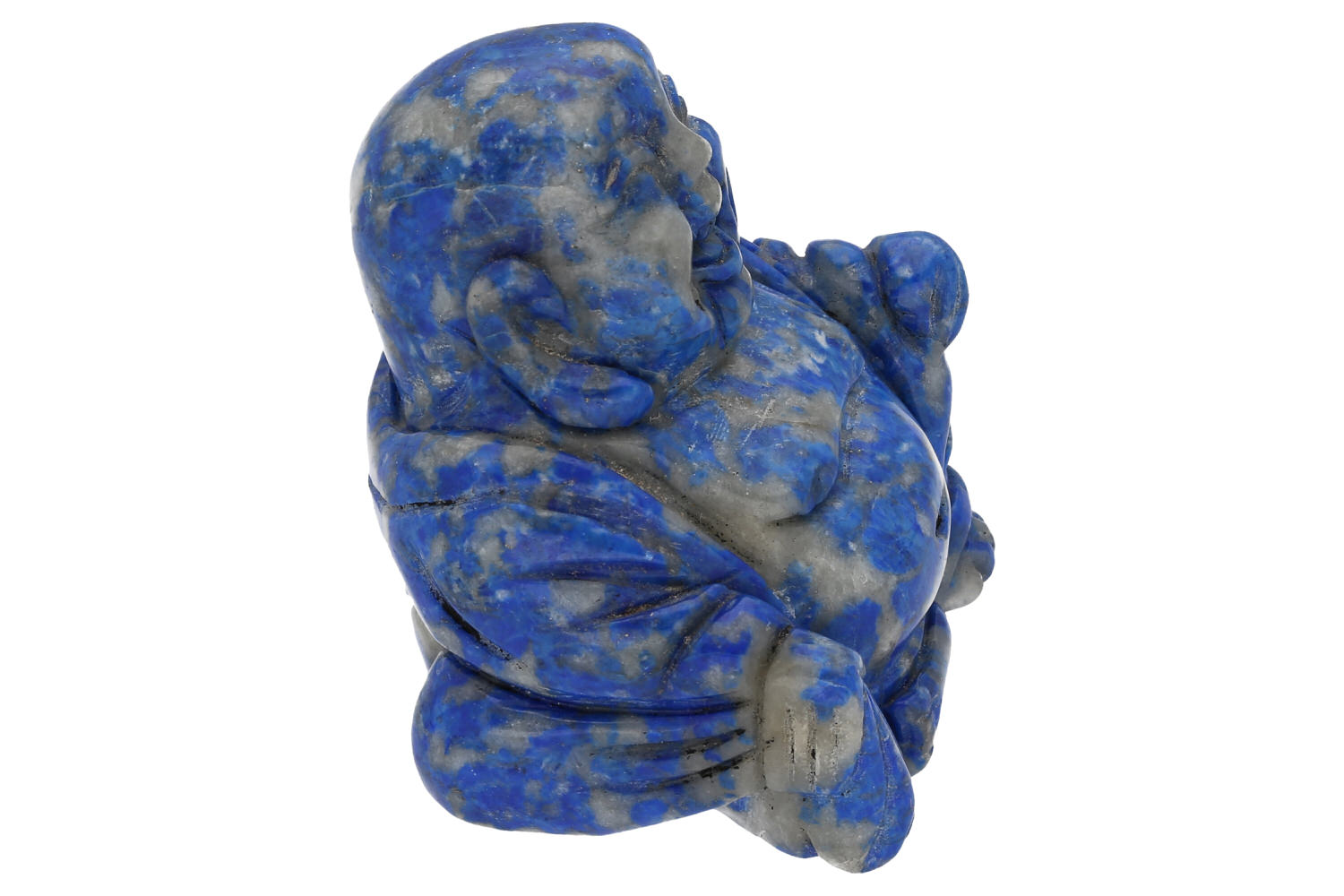 Gravur des lachenden Budhas aus Lapislazuli. Der blaugrau gemaserte Edelstein kommt aus... mehr