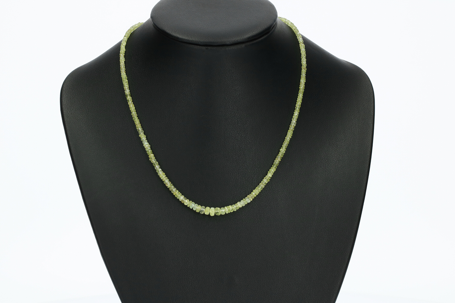 Chrysoberyll Kette mit facettierten Buttons aus Chrysoberyll-Katzenauge in 43cm Länge. Die... mehr
