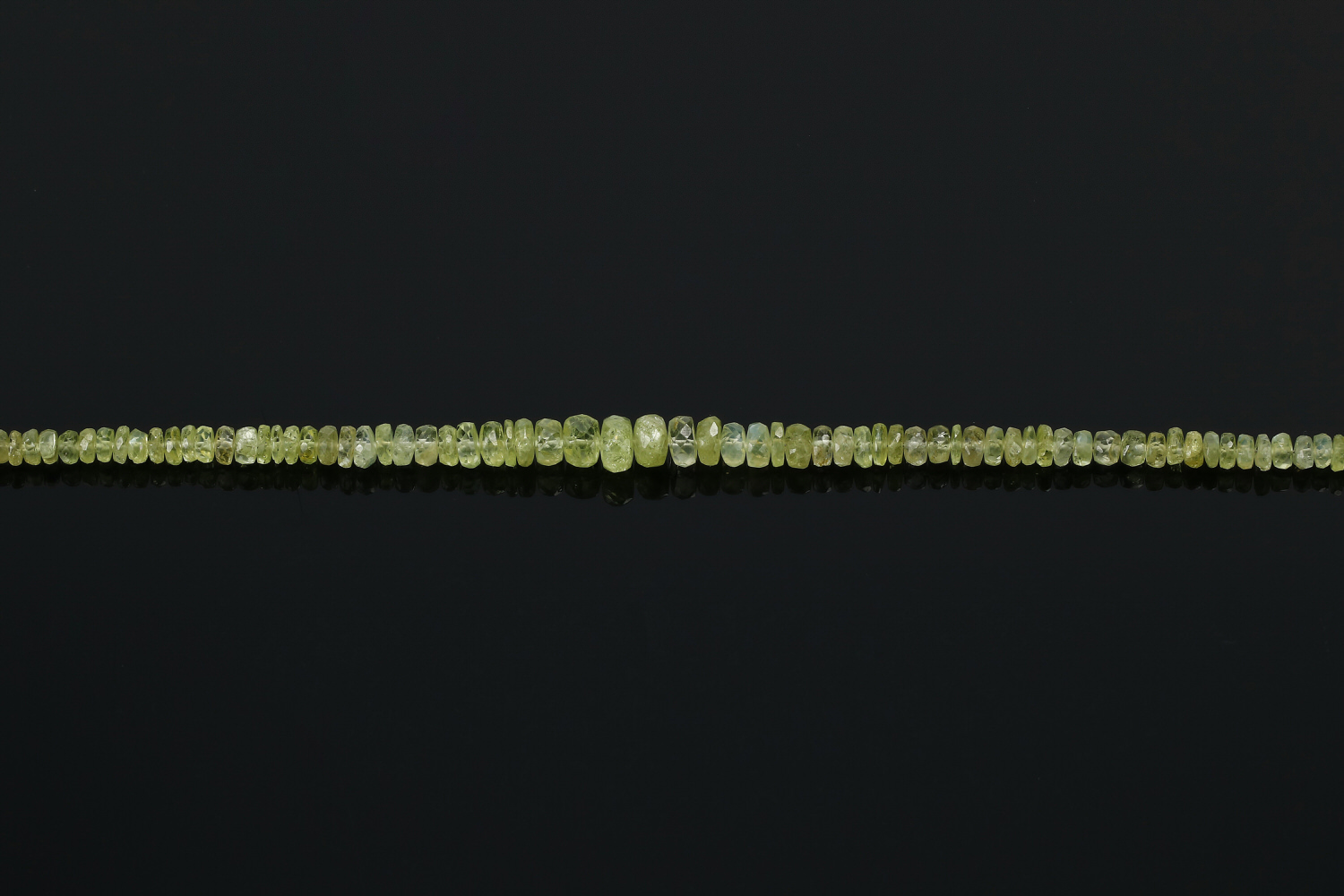 Chrysoberyll Kette mit facettierten Buttons aus Chrysoberyll-Katzenauge in 44cm Länge. Die transparenten Edelsteine zeigen den begehrten Katzenaugen-Effekt (Chatoyance) in leuchtend gelbgrüner Farbe. Die funkelnden Edelsteine haben einen Durchmesser 2,5 bis 5mm in der Mitte. Dieses exklusive Schmuckstück aus unserer Werkstatt ist auf hochwertigen Edelstahl gefädelt und mit Drahtschutz und Kaschierkugeln veredelt, beides aus Sterlingsilber. Das eher ausgefallene und seltene Edelstein Collier besitzt einen Karabiner aus feinem Sterlingsilber. Eine absolut brillante Chrysoberyll-Katzenaugen Kette in einer leuchtenden, fast neongrünen Farbe. Ein absolutes Unikat.