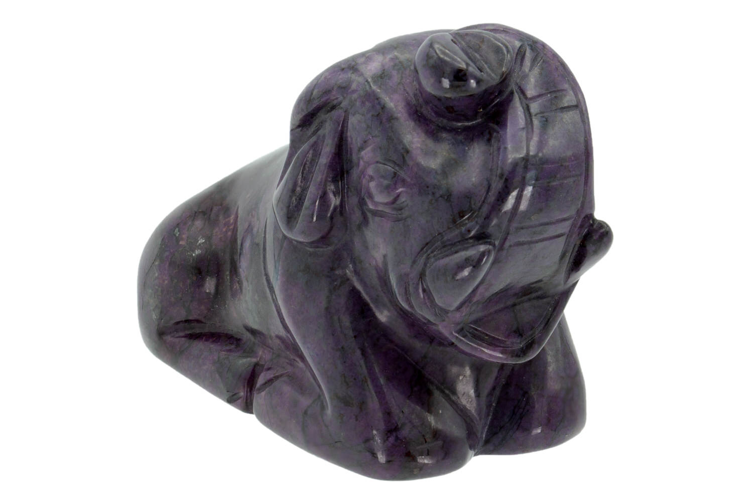 Gravur eines liegenden Elefanten aus lilafarbenem Sugilith. Der putzige Elefant ist aus dem... mehr