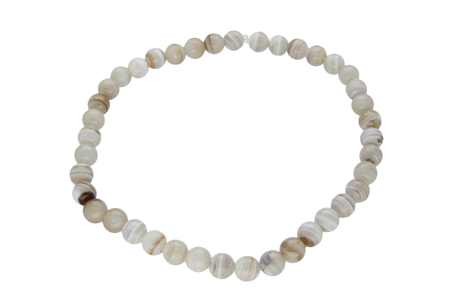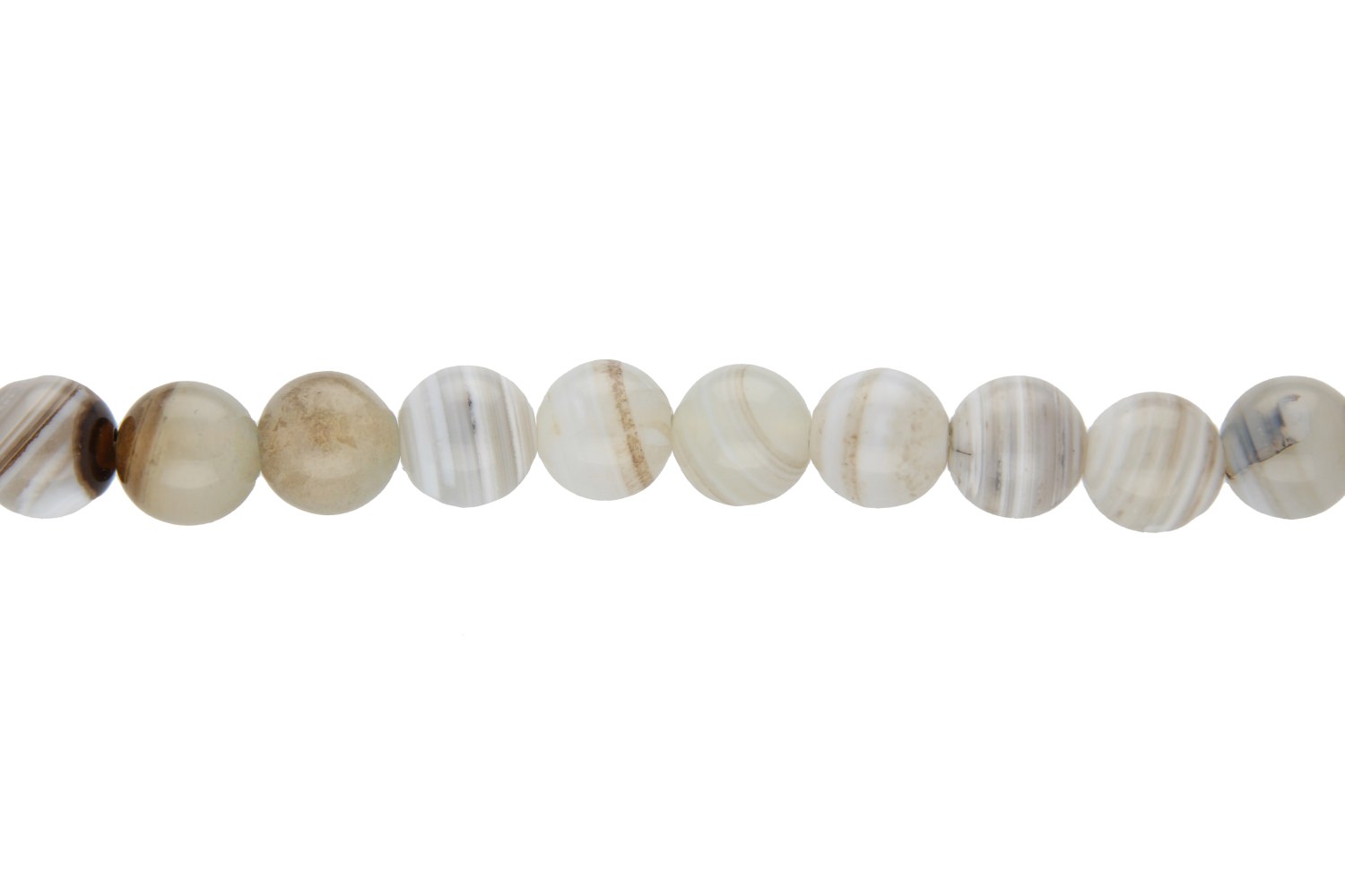10mm-Kugel aus weiß-grau-beige gestreiftem Achat. Die feine, zurückhaltende Struktur dieses ungefärbten Achats eignet sich für zahlreiche Designs.