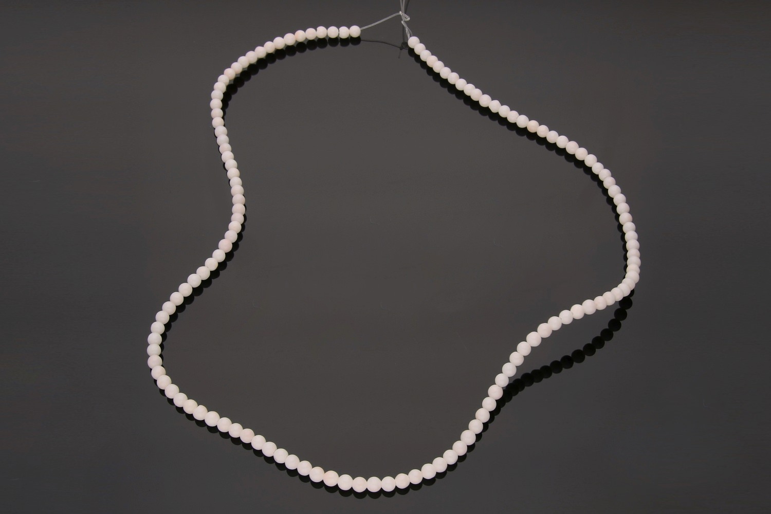 3mm-Kugeln aus Koralle in einem weißen, teilweise roséfarbenen Farbton. Diese pastellfarbene Ware mit ihrer glänzenden Oberfläche ist ideal zu verschiedenen Kombibationen und Kreationen.