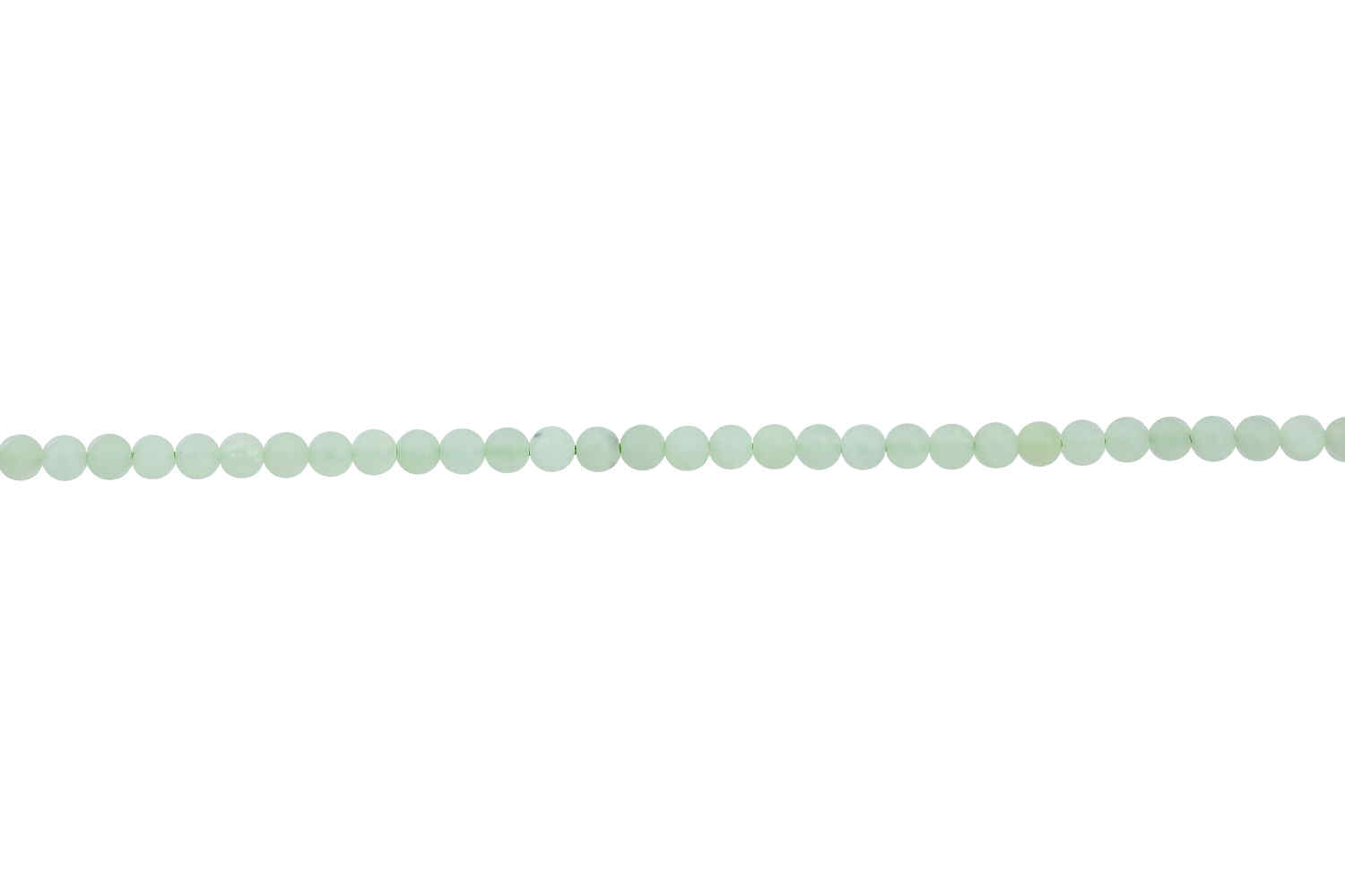 A Qualität 4mm-Kugeln aus hellgrüner, meist durchscheinender China Jade. Diese Varietät des Serpentins wird als New Jade oder China Jade bezeichnet.