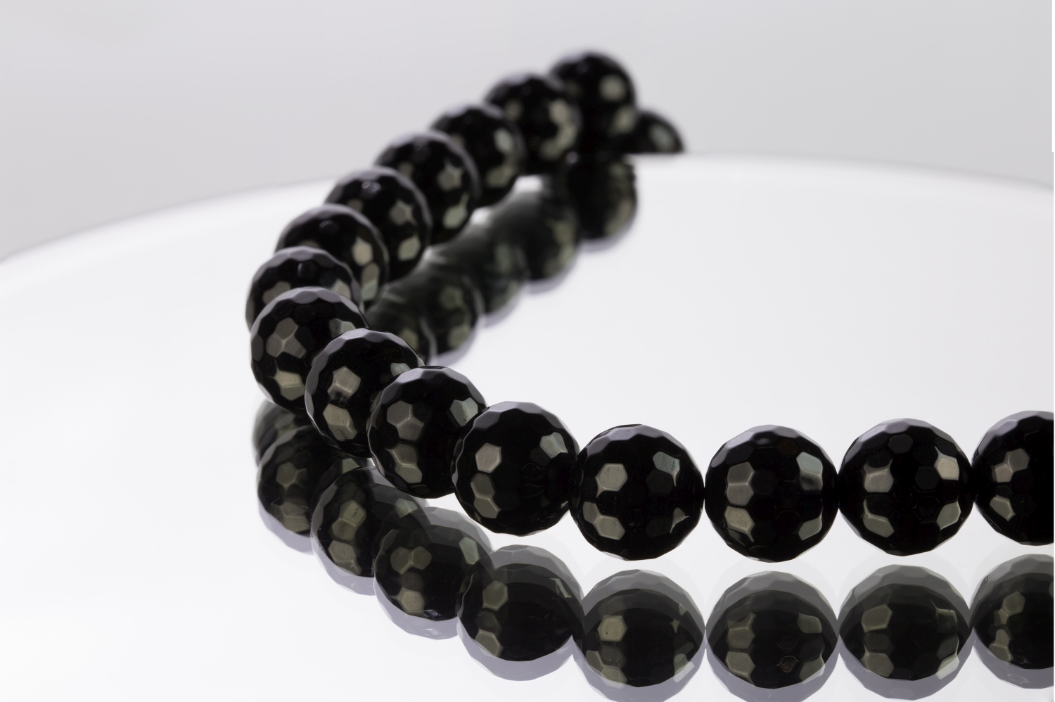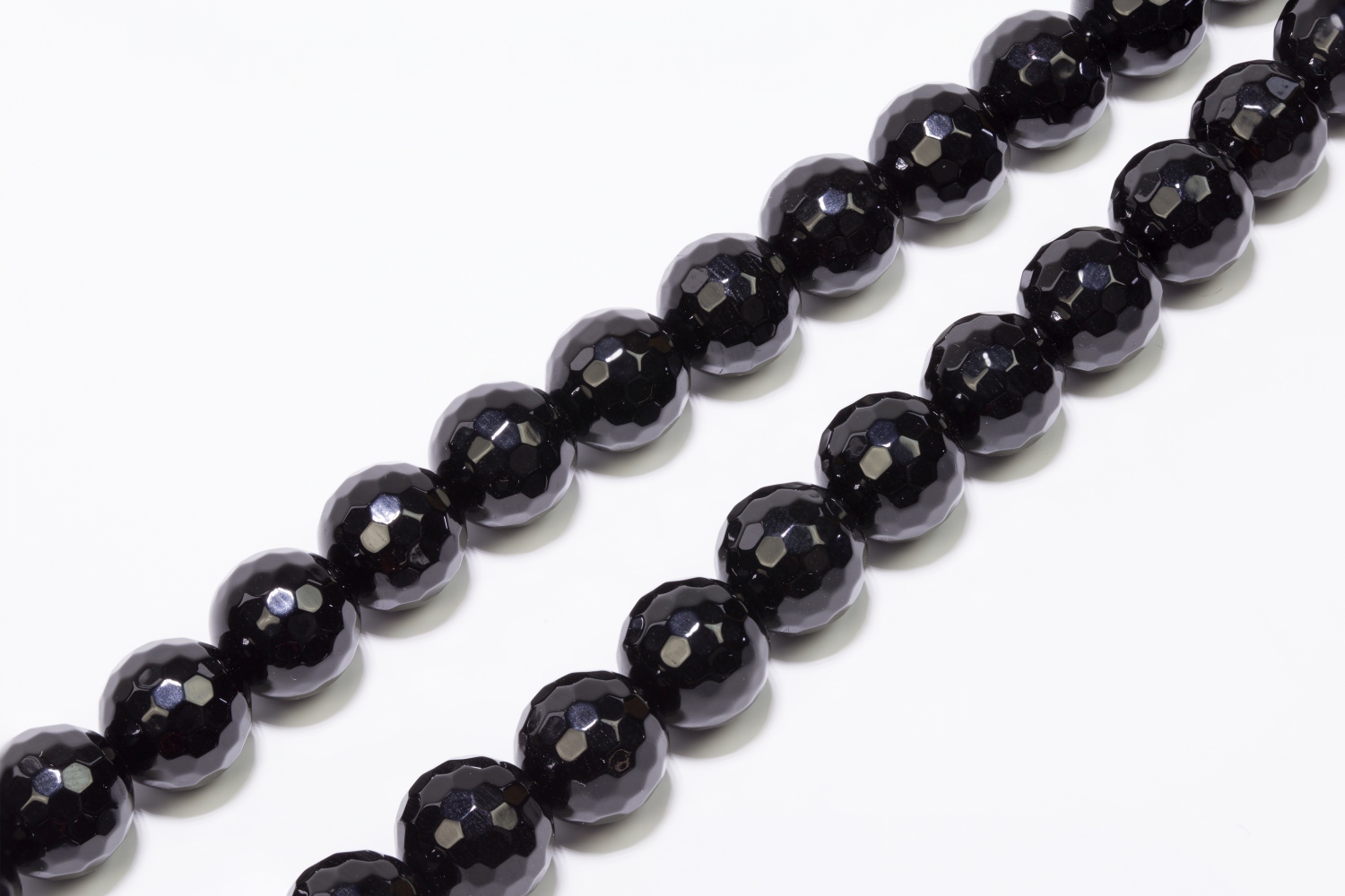 Hochglänzende, schwarze Onyxkugeln mit 128 weichen Facetten, welche um die Wette funkeln. Sehr gute Qualität für glitzernde Designs.