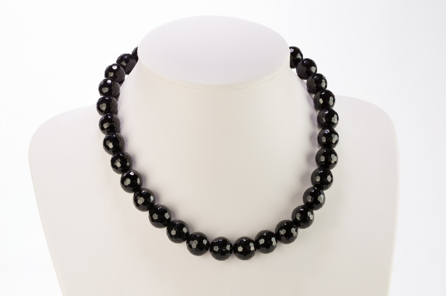 Hochglänzende, schwarze Onyxkugeln mit 128 weichen Facetten, welche um die Wette funkeln. Sehr... mehr