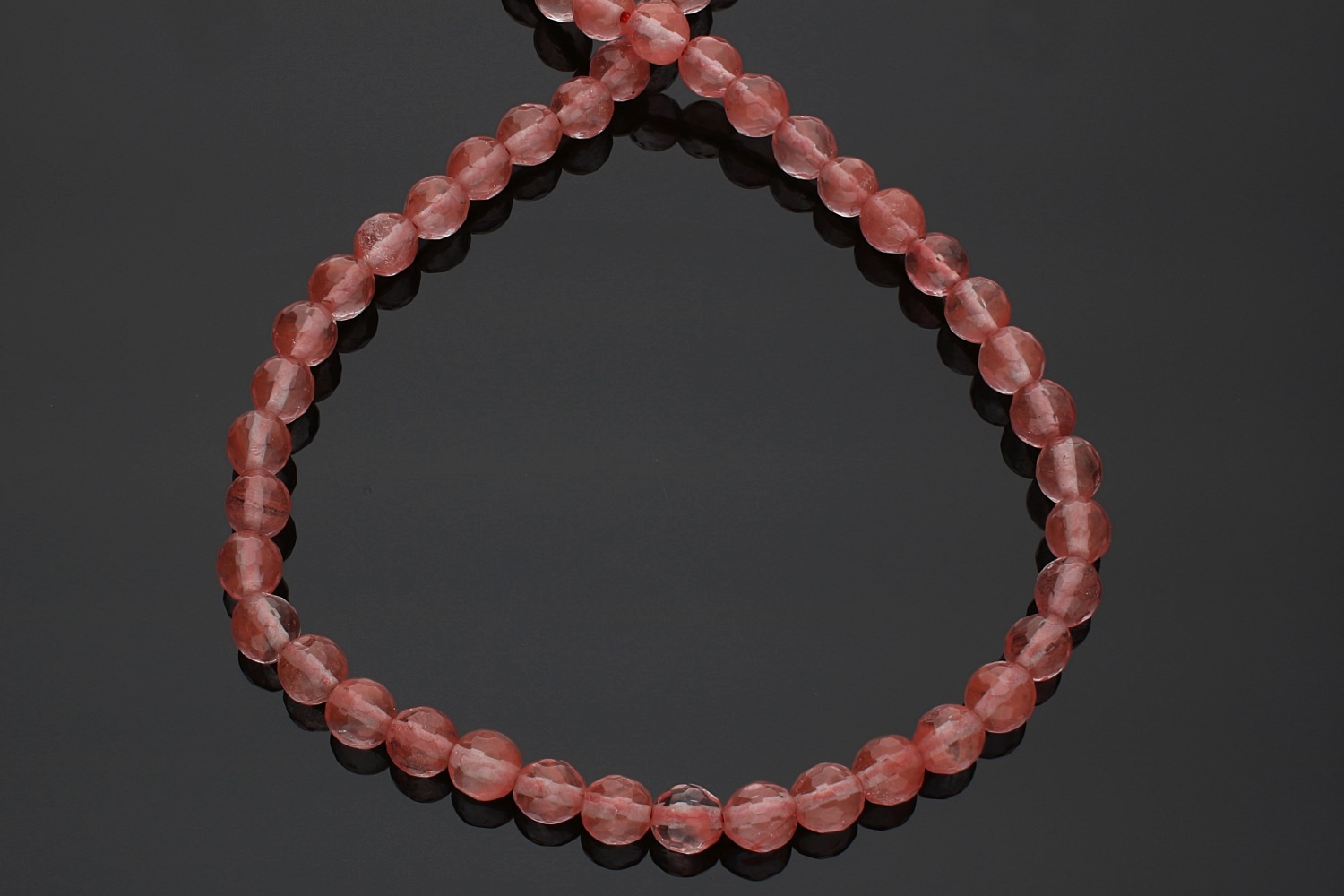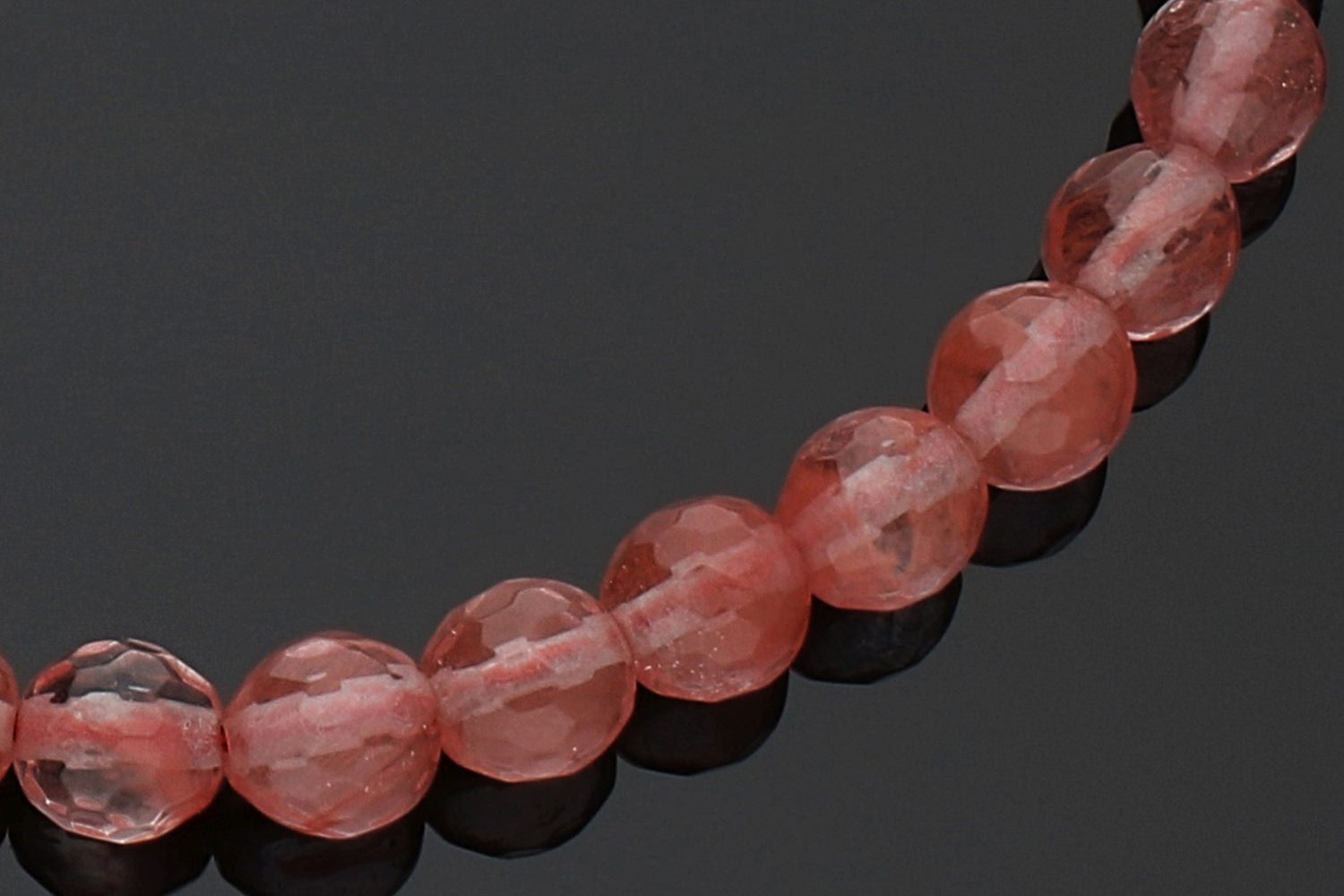 6mm-Kugeln aus rosafarbenem, farbbehandeltem Cherryquarz. Jede einzelne Kugel besitzt 64 Facetten und zeigt ein prächtiges Funkeln.