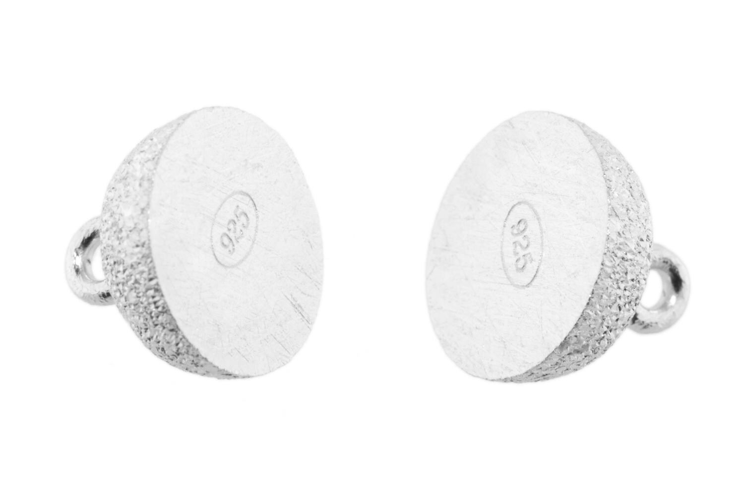 Magnetische Kugelschließe mit unsichtbaren Magneten, ummantelt mit brillantiertem Sterlingsilber, erprobt zugkräftig und zuverlässig.