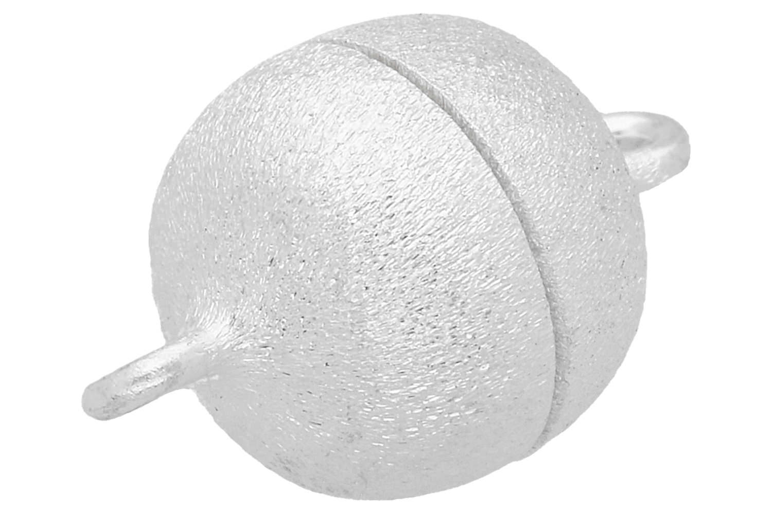 Kräftige Magnet-Kugelschließe, ummantelt mit mattertem Sterlingsilber. Die Magneten sind eingegossen und gegen Herausfallen und Oxidation geschützt.