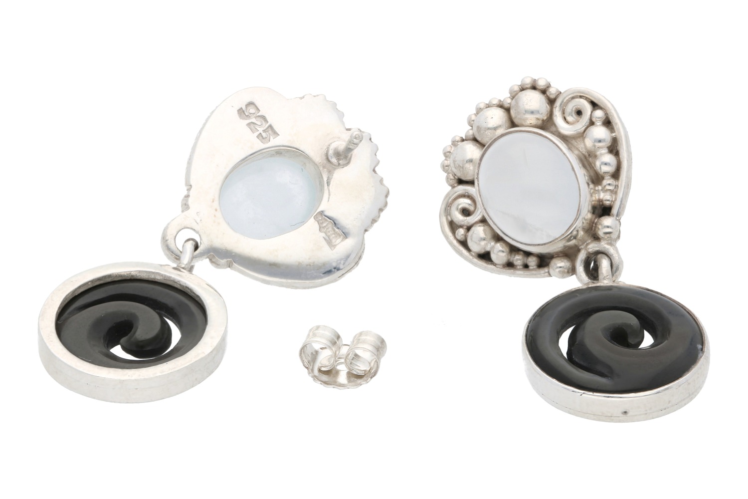 Weiterführende Links zu "Ohrstecker 16x32mm mit weißem Mondstein + Hämatin in Silber 925"