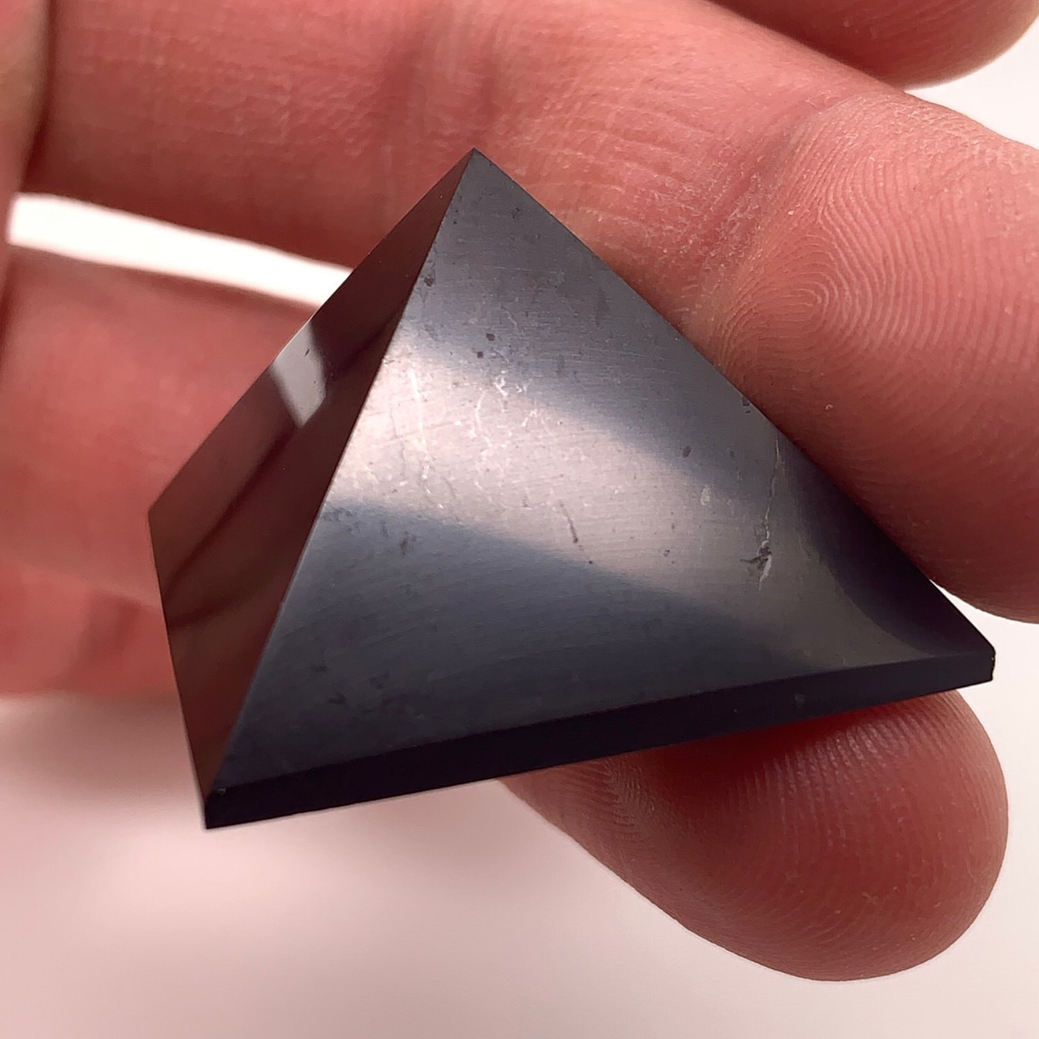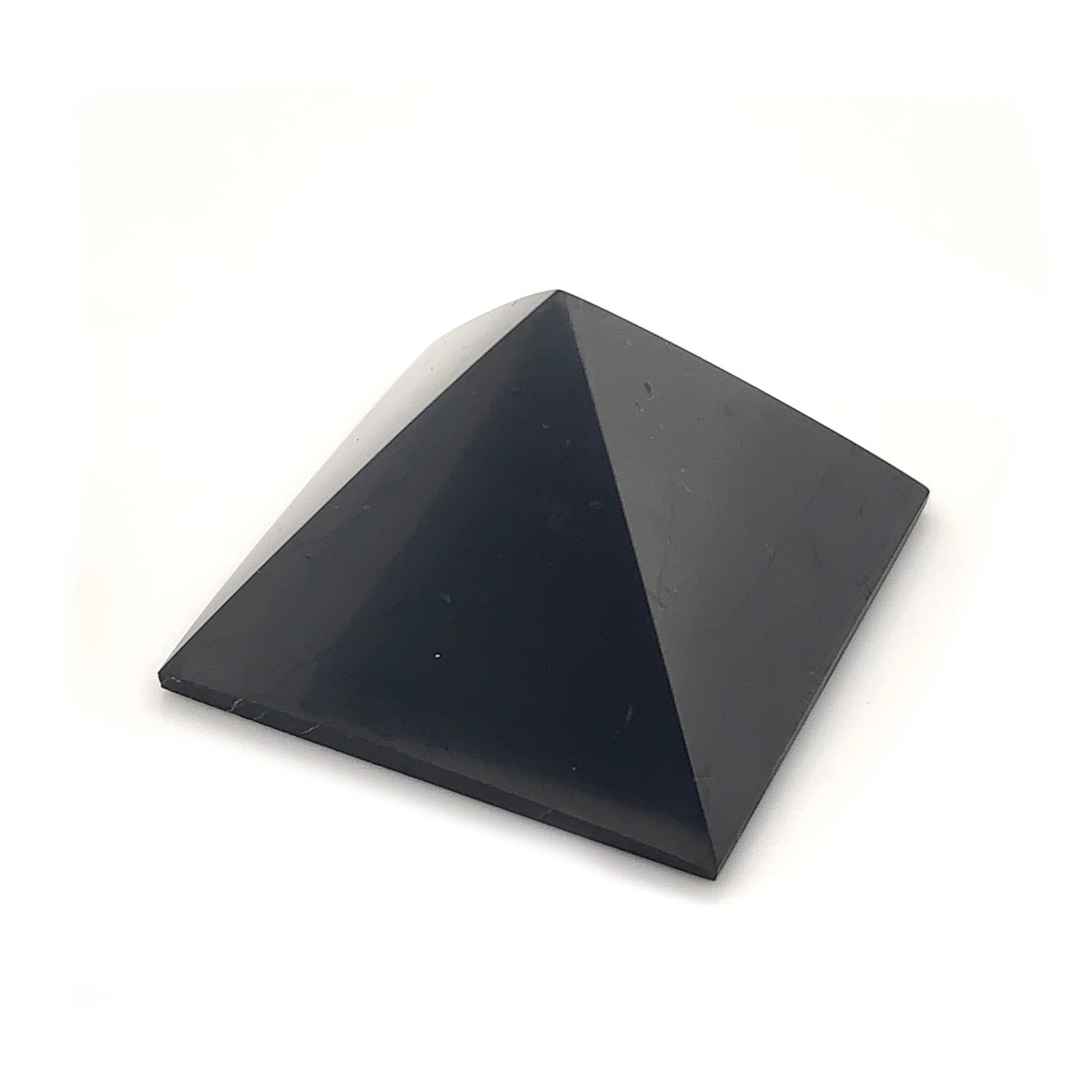 Pyramide aus anthrazit farbenem Schungit aus Russland. Die Pyramide hat die klassische quadratische Grundfläche, die Höhe beträgt ca.23mm. Die Form der Pyramide fasziniert die Menschen nicht erst seit den Pharaonen und ihren Pyramiden. Sie wird auch gerne zur Energiearbeit genutzt.