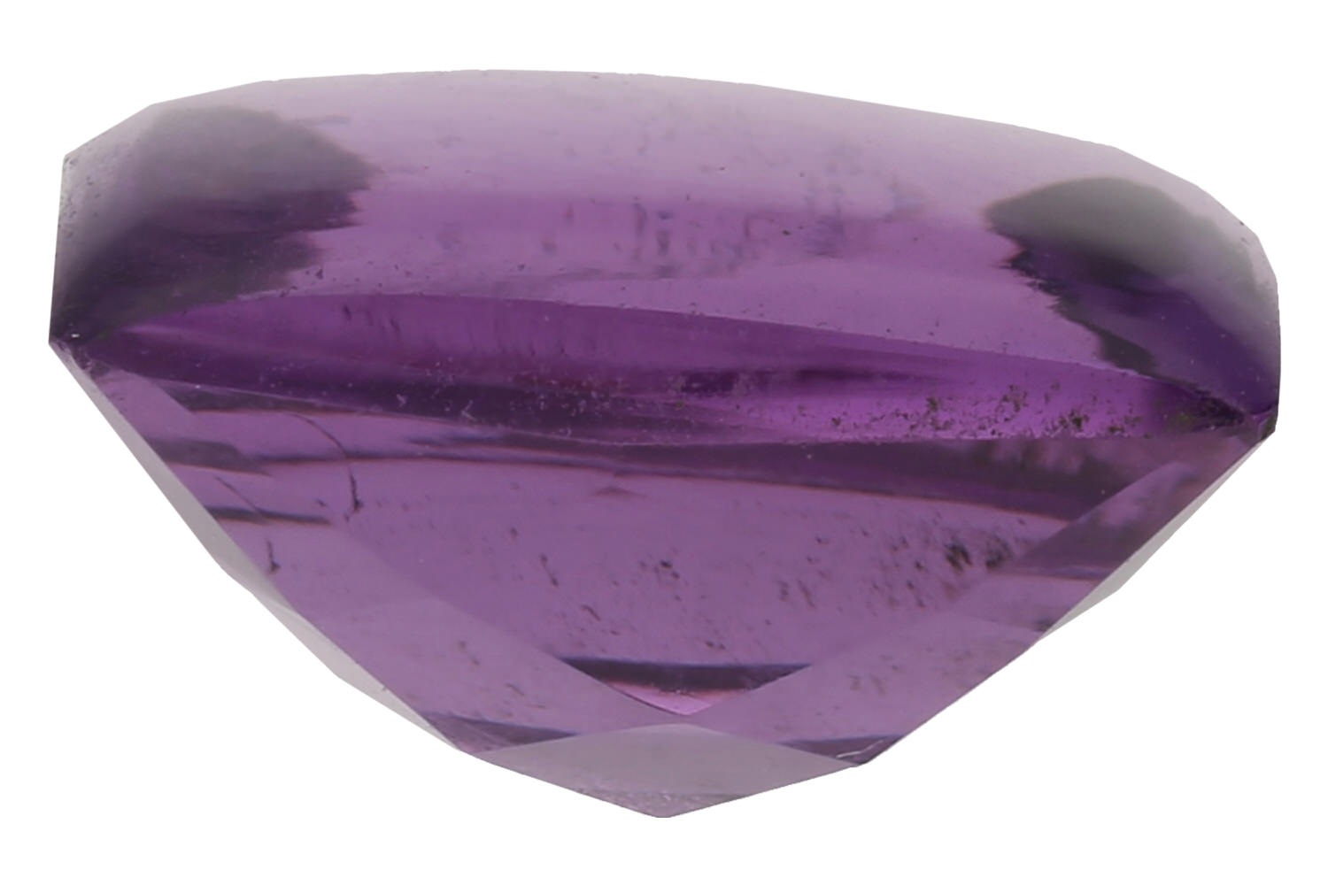FQuadrat mit glatter Oberseite und facettierter Unterseite aus transparentem, violettem Amethyst.