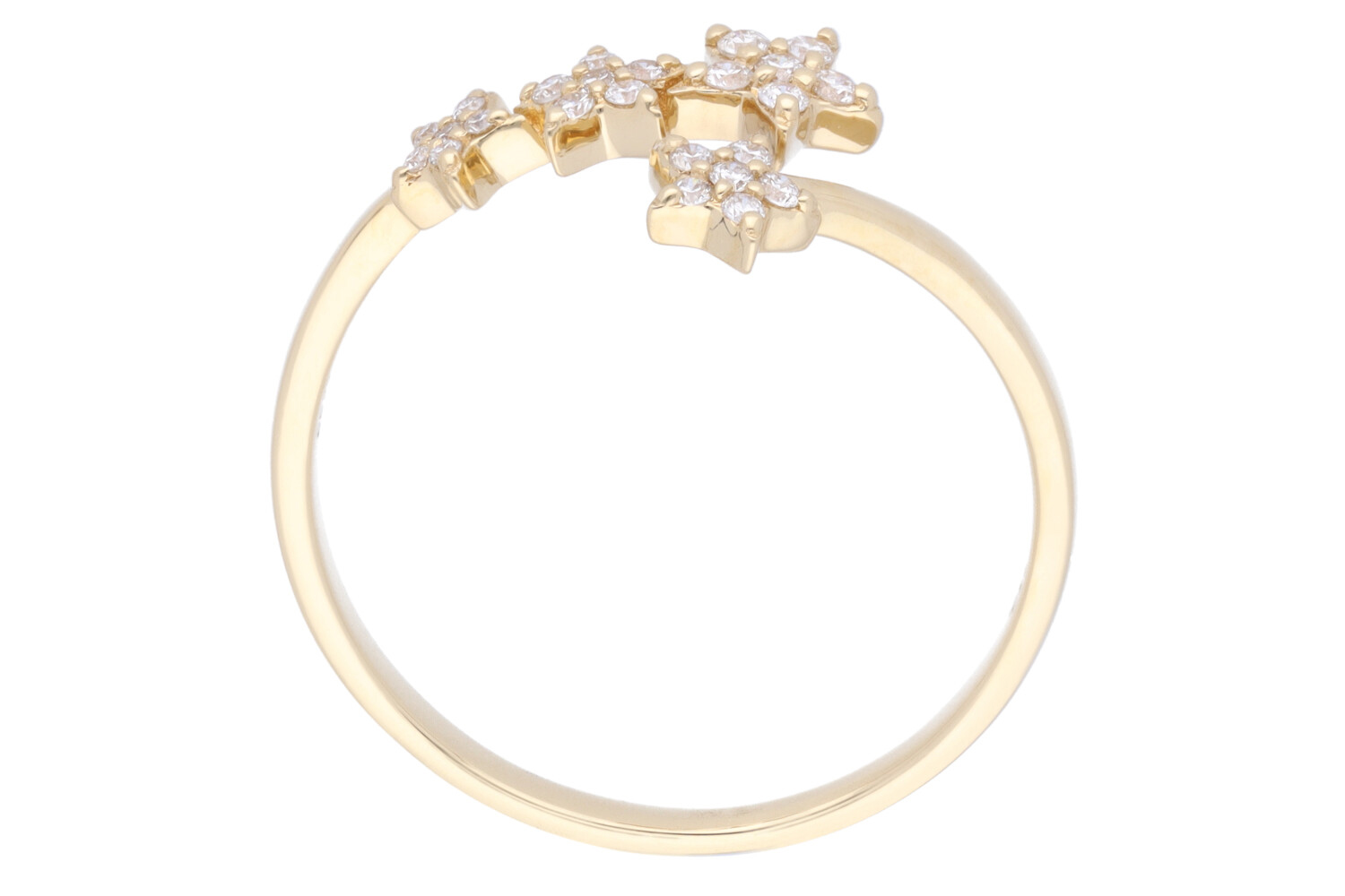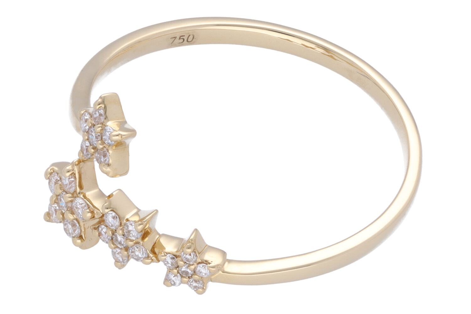 Ring Stern 4x aus 18k Gelbgold mit 24 weißen Brillanten 0,13 ct Größe 54
