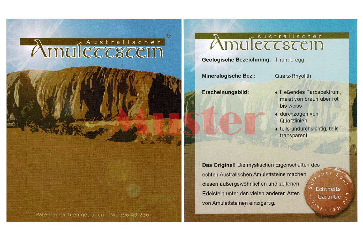Original Australischer Amulettstein. Der auch Thunderegg genannte Quarz-Rhylith zeigt ein Farbspektrum von weiß über beige bis rötlich. Dieser seltene Edelstein wird mit Echtheitszertifikat geliefert.