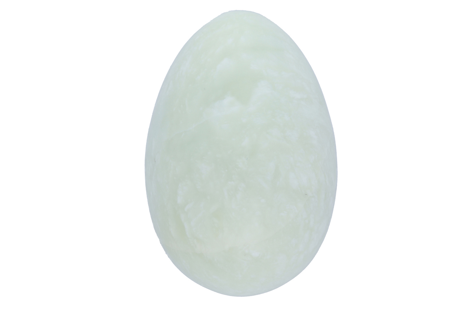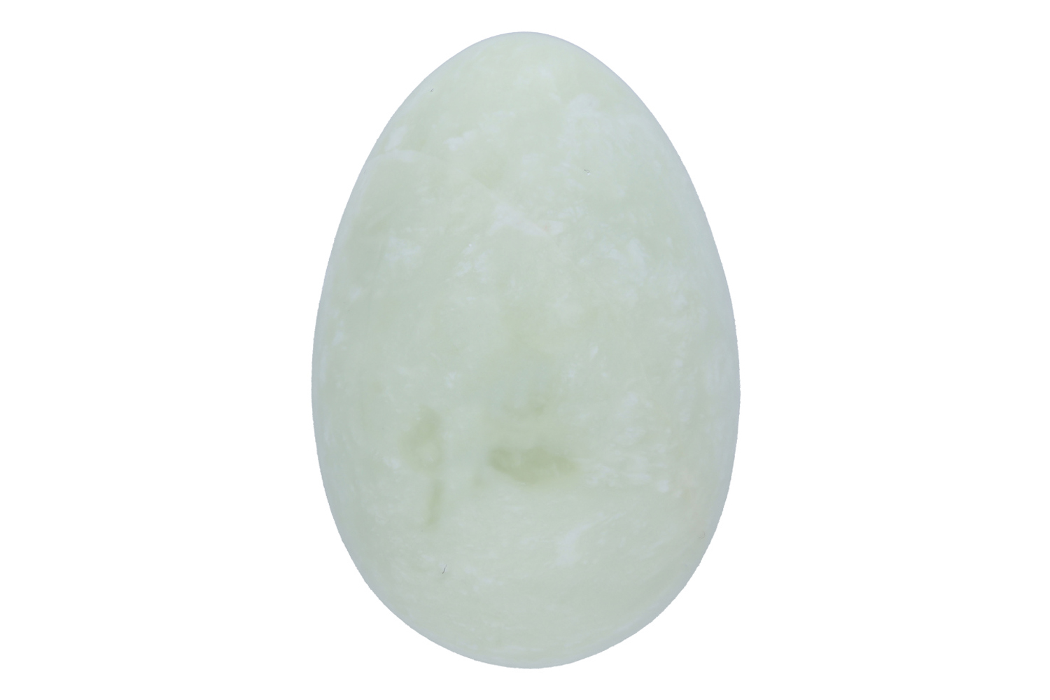 Yoni-Ei aus hellgrünem Serpentin. Dieser Edelstein wird auch als China-Jade bezeichnet.
